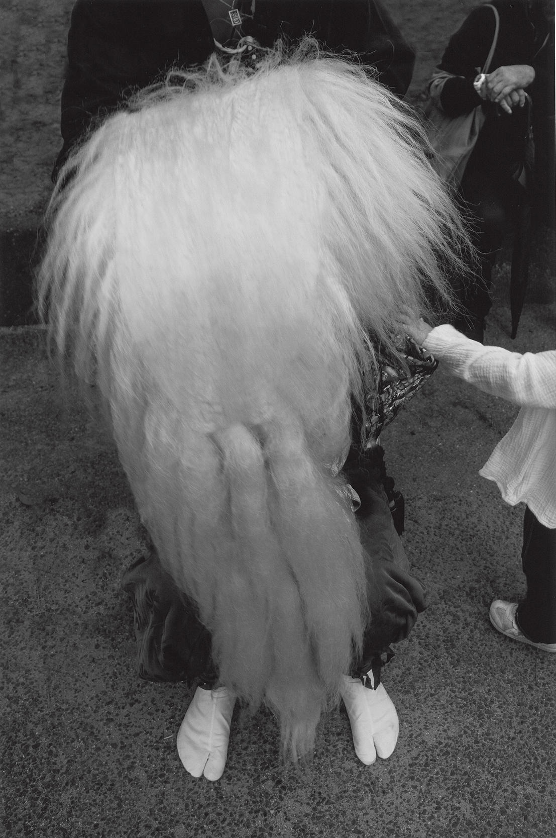立木 :こんな生物が街中にいたら驚くけど、祭りの非日常の世界だから当たり前に受け入れることができる。 で、その形。 白い毛並みが何やら不思議な物体に見えてくる。