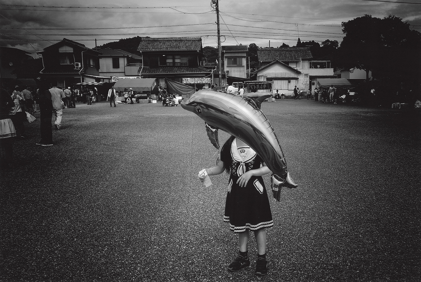 立木:シャッターを切ったタイミングが絶妙なのは誰でもわかると思うけど、 手前の地面を大きく入れたことで彼女とイルカが強調されている。 しかも構成としては近景・中景・ 遠景というのが普通だけど、 その地面によって近景と遠景 だけの写真になって広角でパンフォーカス気味にしたことでより強さが出てきた。