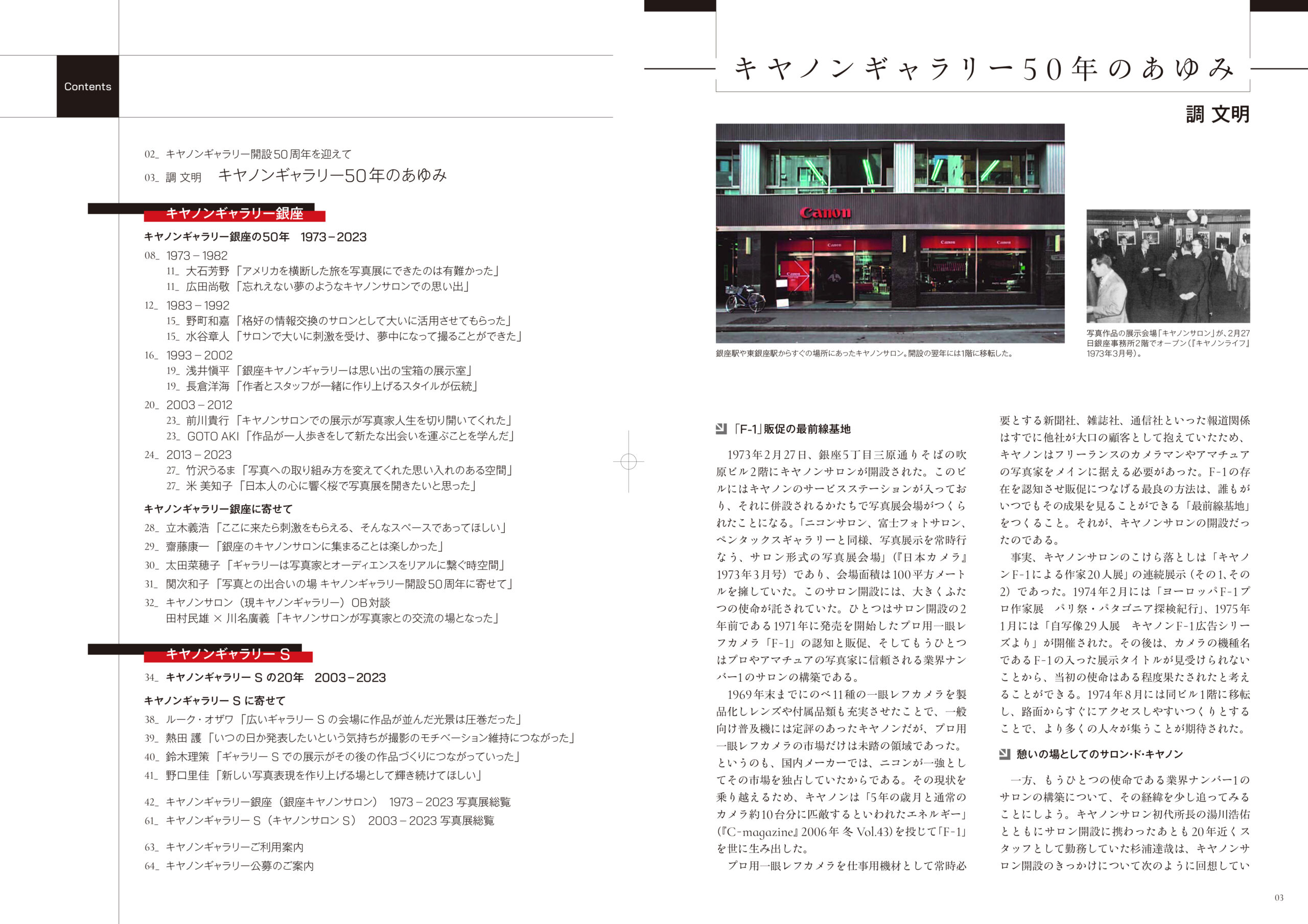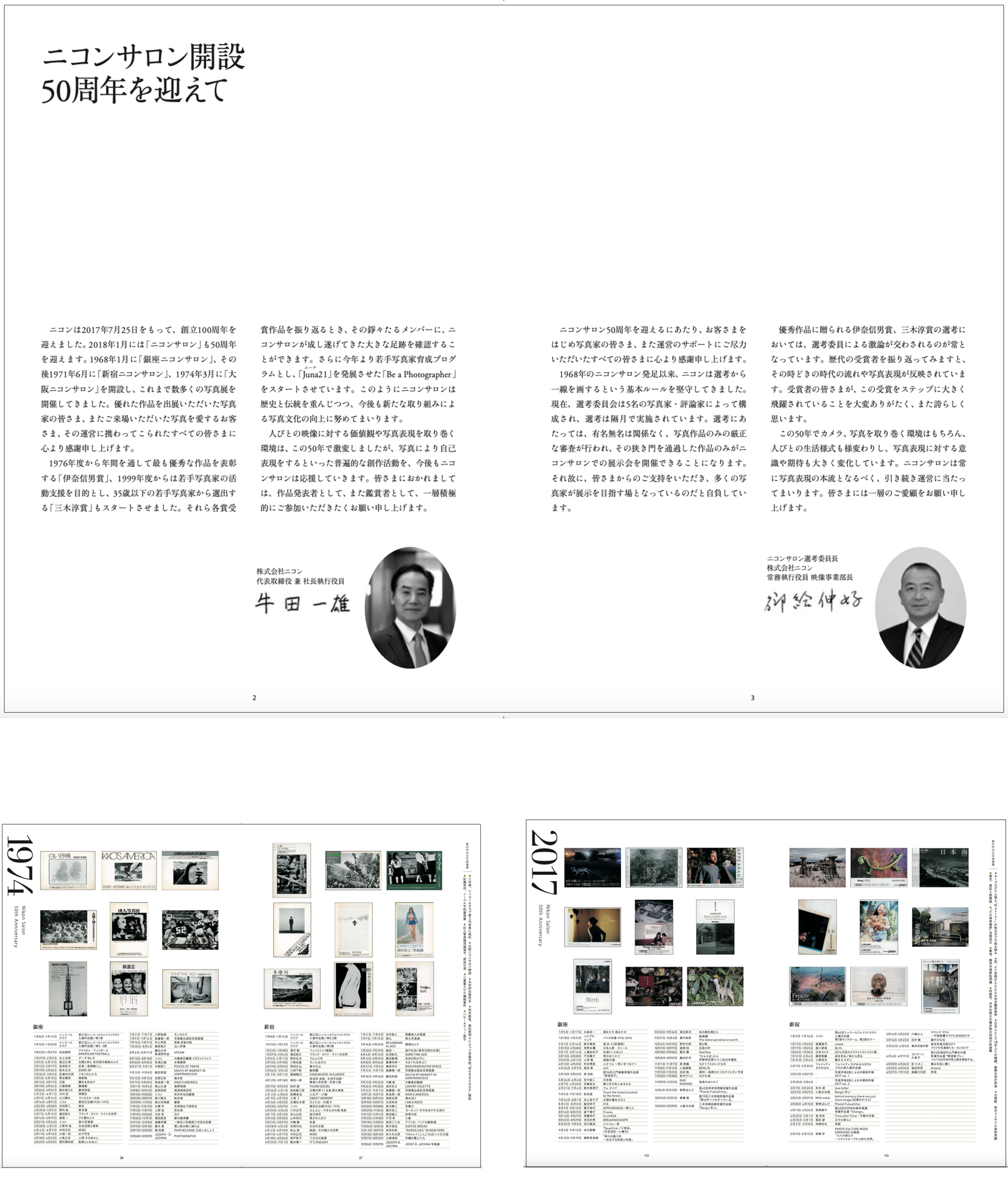 開設から現在までの歴史をまとめた「ニコンサロンの半世紀」やニコンサロン審査員による「特別座談会」も収録。