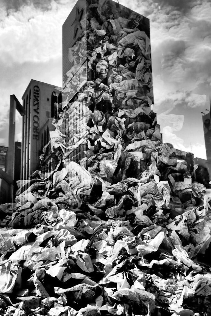 反射、透過、歪曲によって、都市は本来の輪郭を手放す。